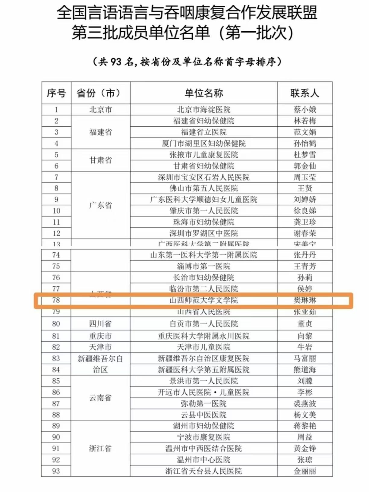 另据全国言语语言与吞咽康复合作发展联盟消息,文学院作为第三批联盟成员单位正式加入联盟。该联盟是由中南大学附属湘雅二医院发起的一项全国性的志愿服务活动的联盟组织,旨在通过医学、心理学、语言学等多学科方式,以志愿服务为基础,服务言语康复人群。今后,文学院将在国民语言能力提升、言语健康领域贡献更多力量!