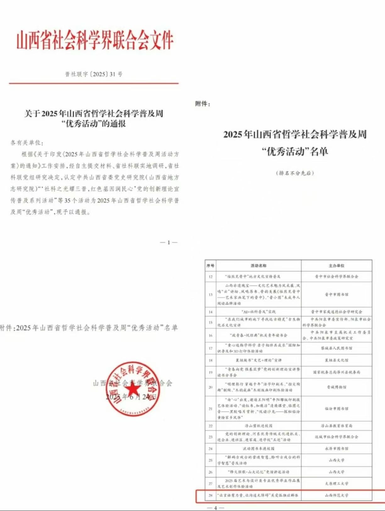 近日,山西省哲学社会科学联合会公布了2025年山西省哲学社会科学普及周“优秀活动”,文学院“‘让言语有力量,让沟通无障碍’关爱孤独症群体”活动成功入选。