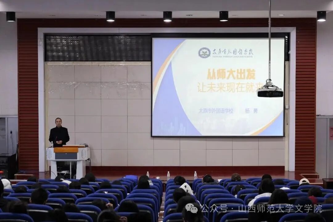 11月2日上午,文学院特邀山西省特级教师、中学语文高级教师、太原市外国语学校校长杨勇在南区报告厅开展“从师大出发,让未来现在就来”主题讲座。文学院副院长李晓敏担任主持,文学院2025级新生到场聆听。