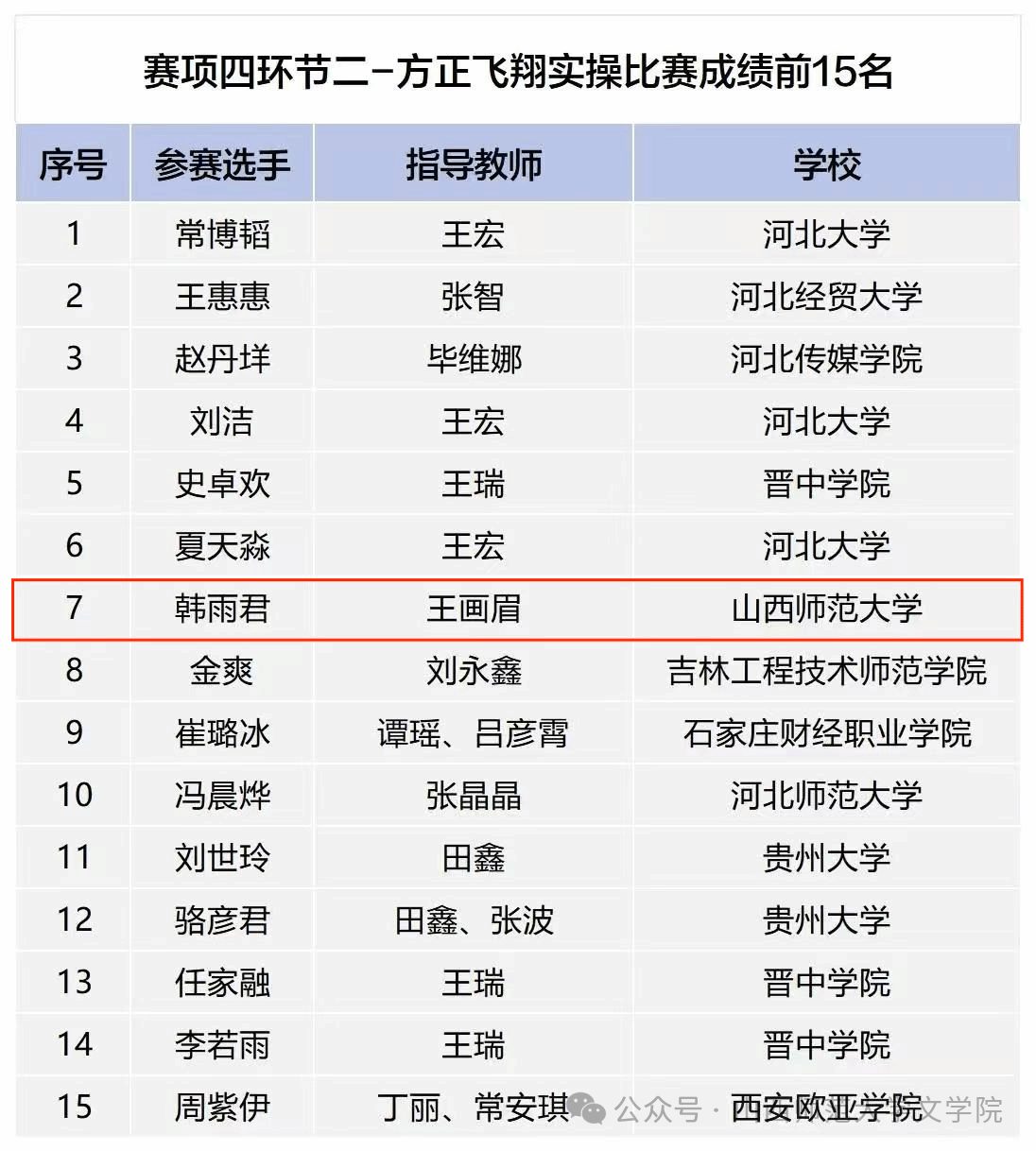 近日,第十三届全国大学生新媒体创意大赛赛项四平面排版创意设计-方正飞翔实操比赛结果公布。我院学子韩雨君在王画眉老师的指导下成功跻身环节二方正飞翔实操比赛第7名,展现了学院在新媒体设计与排版领域的扎实教学成果。