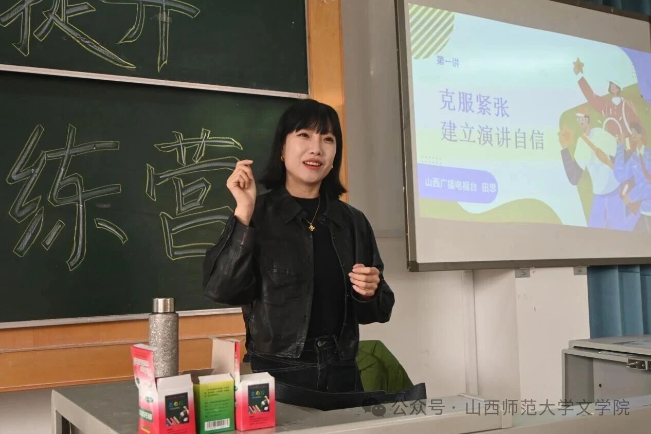 11月8日下午,文学院大学生演讲俱乐部在南区5108教室举办第一期“演讲能力提升”训练营。本期活动特邀山西广播电视台交通广播节目中心主持人、记者田思担任主讲,学院部分同学到场参加。