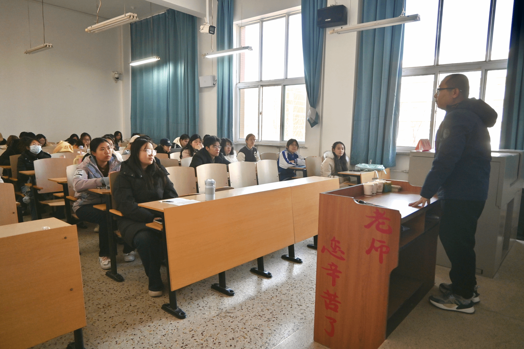 讲座重点围绕演讲技巧、语言表达、舞台表现及内容组织等方面进行深入讲解与示范。刘士义以现场主持人的表现为例,提到演讲要在站姿与仪态上体现自信,通过眼神交流去判断现场反馈,进而调整讲述节奏。他谈到,演讲的核心在于情绪调动,语言表达要简洁有力,要有情感宣泄与感染力;遇到突发状况要从容镇定,临场应变能力比完美无缺更加重要。此外,他仔细审阅了同学们上交的演讲稿,并依据演讲稿为同学们规范了稿件的写作。本次活动夯实了同学们语言表达的专业基础,锤炼了临场应变的实战能力,助力同学们在未来的教学实践与公众表达中绽放文院风采。