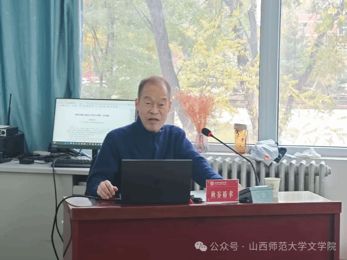 11月10日下午,文学院特邀日本爱媛大学法文学部教授秋谷裕幸,于2201会议室作题为“晋语吕梁片汾州小片的入声韵”的学术讲座。讲座由关黑拽老师主持,部分研究生参加。