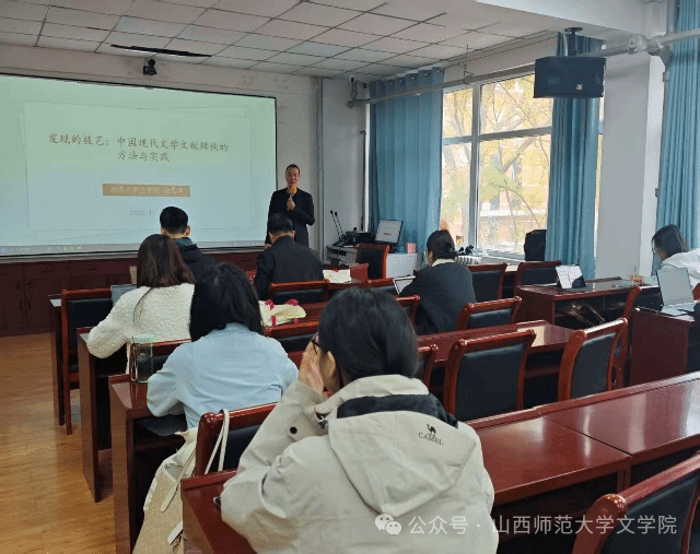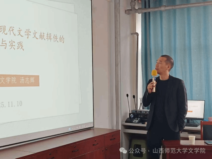 11月10日上午,文学院特邀湖南大学文学院副教授、硕士研究生导师、现当代文学教研室主任、《现代湘学》编辑部主任汤志辉,于2201会议室作题为“发现的技艺:中国现代文学文献辑佚的方法与实践”的学术讲座。讲座由郭俊超老师主持,部分研究生参加。